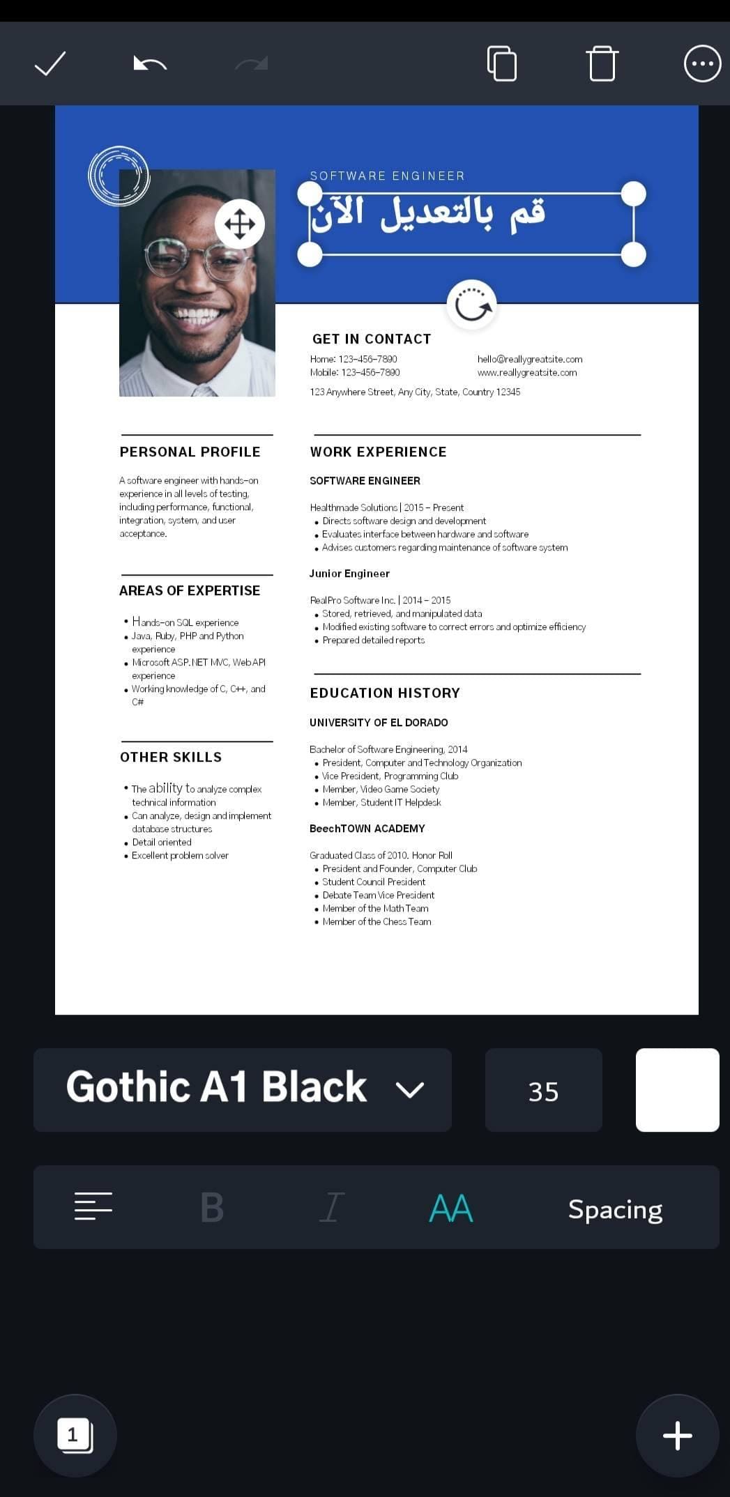 | نموذج سيرة ذاتية جاهز للتعديل للموبايل |